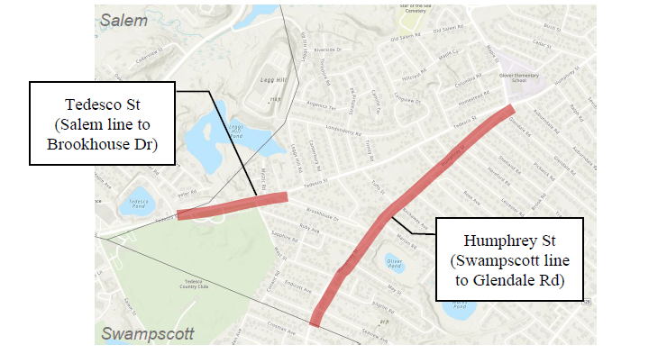 Where: Tedesco St (Salem Line to Brookhouse Drive) and Humphrey St (Swampscott Line to Glendale Rd)